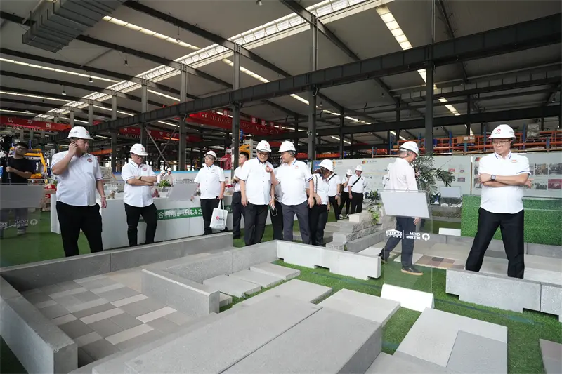 در محوطه نمایش نمونه آجر، انواع آجرهای نفوذپذیر، آجرهای سنگی بدل شده و مصالح ساختمانی بازیافتی زباله جامد توجه گروه بازدیدکننده را به خود جلب کرد. فو Binghuang، رئیس شرکت Quangong Machinery Co.Ltd، توضیح داد که از طریق تحقیق و توسعه فناوری، Quangong Machinery Co.Ltd. زباله هایی مانند زباله های ساختمانی و باطله ها را به مصالح ساختمانی با ارزش افزوده بالا و سازگار با محیط زیست تبدیل می کند و سالانه بیش از 10 میلیون تن زباله جامد را دفع می کند. رئیس Liu Guoquan استحکام و نفوذپذیری نمونههای آجر را بررسی کرد و از عملکرد QGM در "تبدیل زباله به گنج" به عنوان "الگوی اقتصاد دایرهای" تمجید کرد.