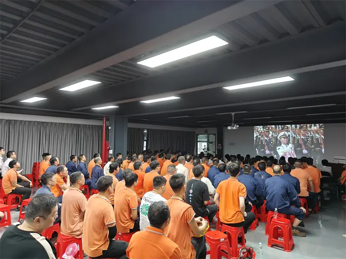 3 سپتامبر روز بسیار مهمی برای کل مردم چین بود. در این روز خاص، Fujian Quangong Machinery Co., Ltd، رئیس Fu Binghuang و مدیر کل Fu Xinyuan، همه کارکنان را در اتاق کنفرانس شرکت هدایت کردند تا رژه نظامی بزرگ را تماشا کنند و شاهد این لحظه تاریخی هیجان انگیز باشند.